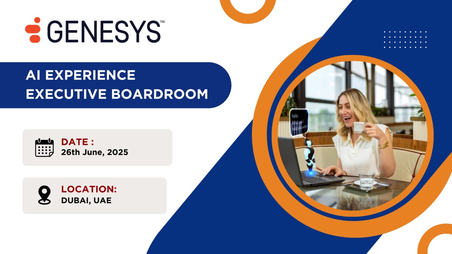 Join us in an interactive executive boardroom event, where we will deep dive into the world of CX powered by AI. Meet with industry experts from Genesys and e&, and solution consultants to discover how you can utilize AI to create a state of the art CX.